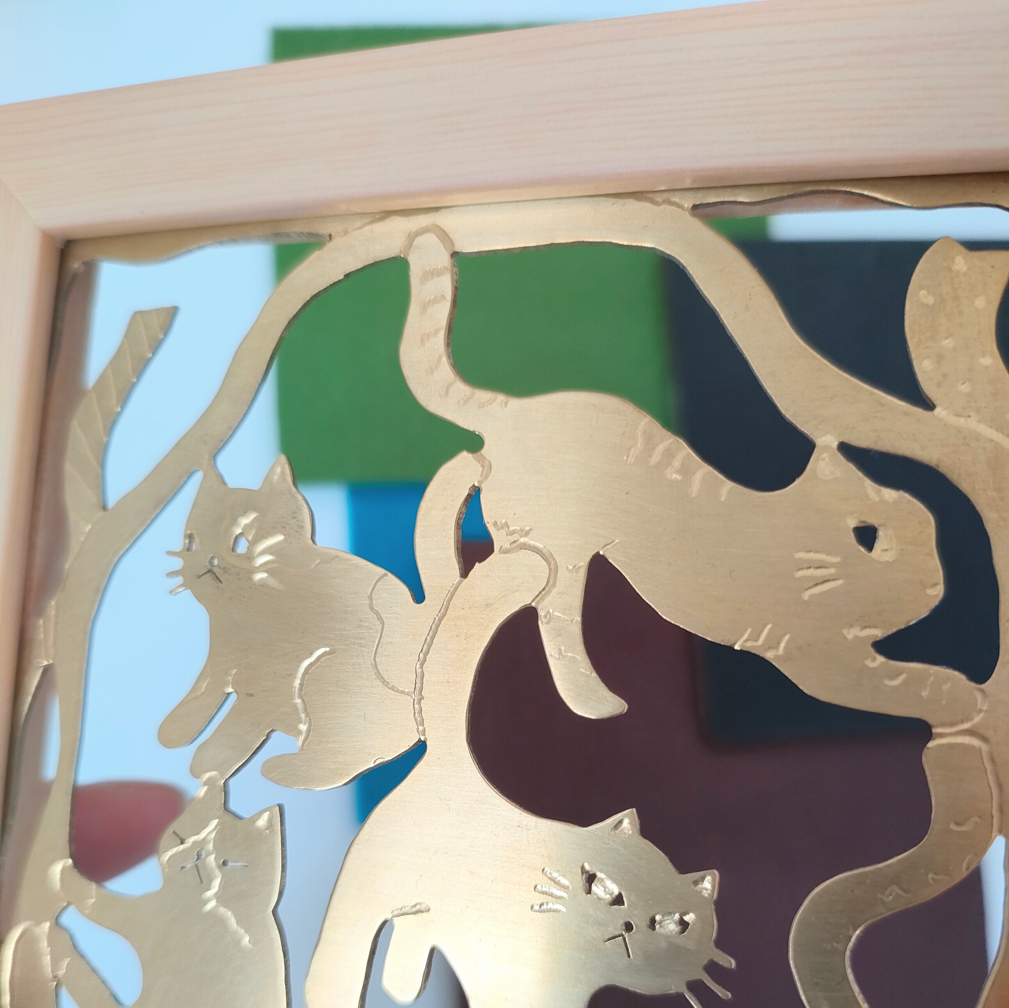 糸鋸で真鍮板を手切りして切り絵を制作しています。